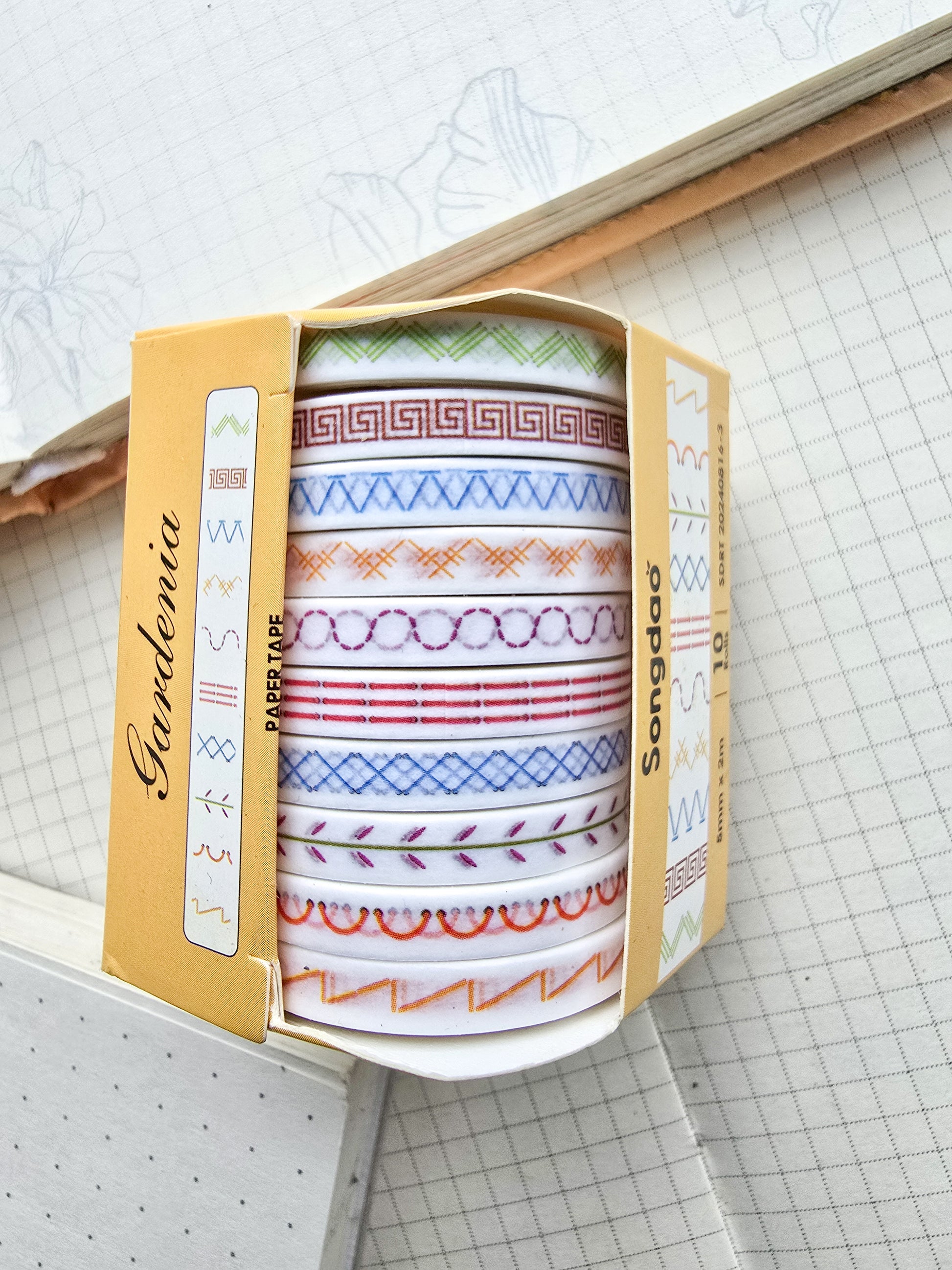 0816-3 Gardenia Thin Washi Tape Set of 10 Washi tapes | Japanese Washi Paper | 2 Meter each |