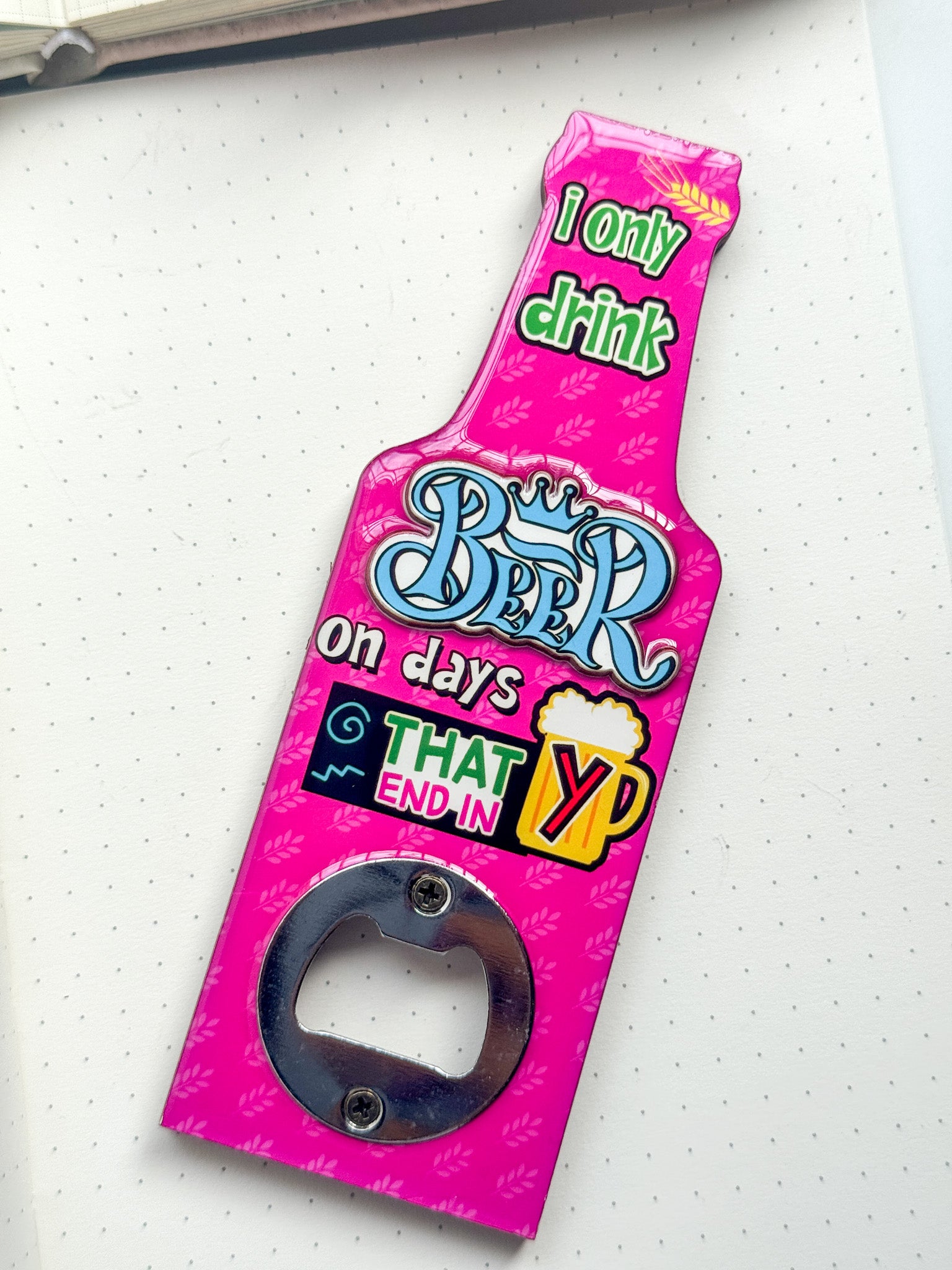 Beer Bottle Themed Fridge Magnet With Bottle cap opener #6 | Glossy Look With Durable Wooden Body