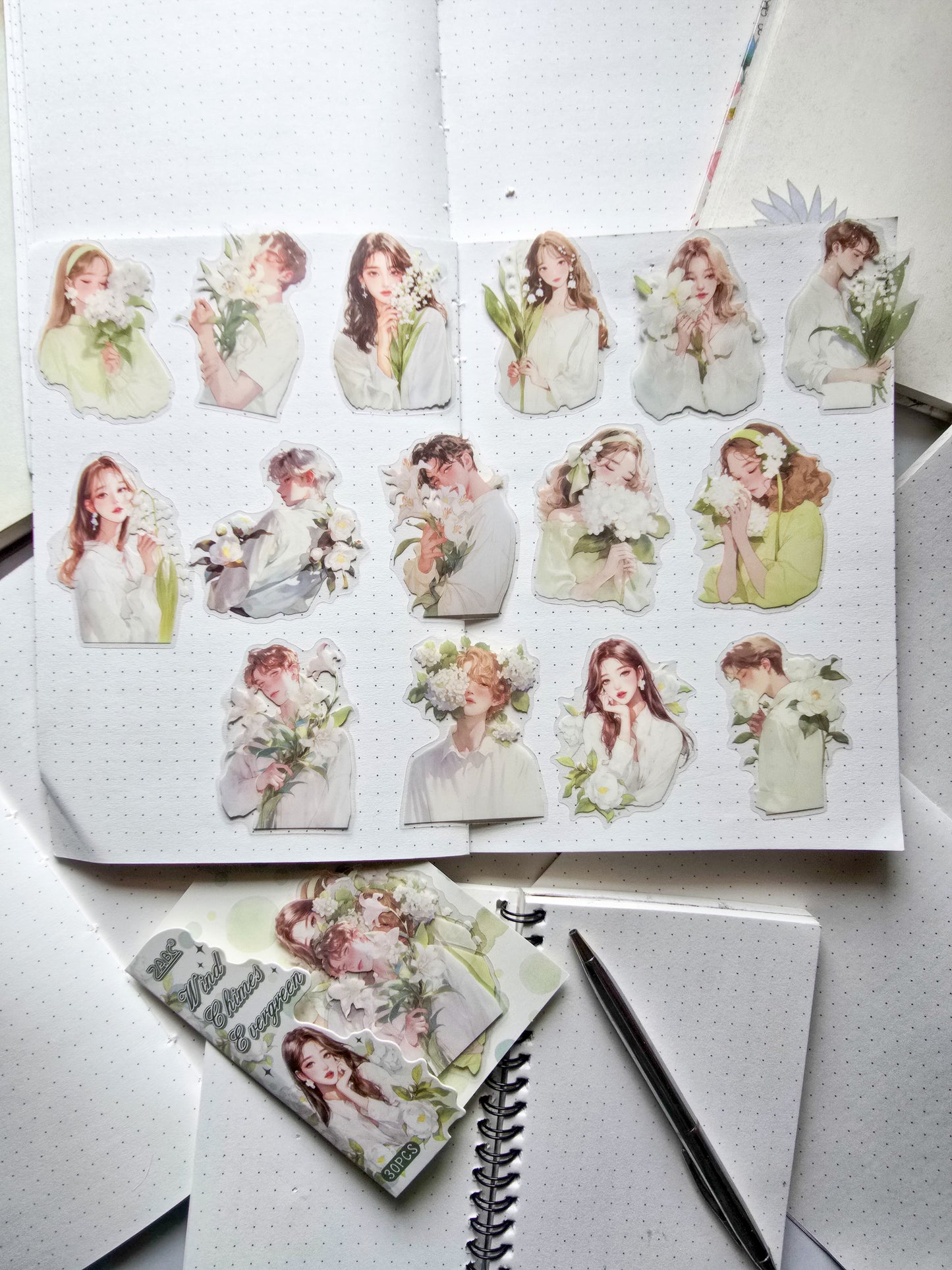 CYQG-401 Wind Chimes Evergreen| Vintage Character Cutout| Transparent Pet Sticker|Green Theam Character Sticker70*70mm 30Pcs