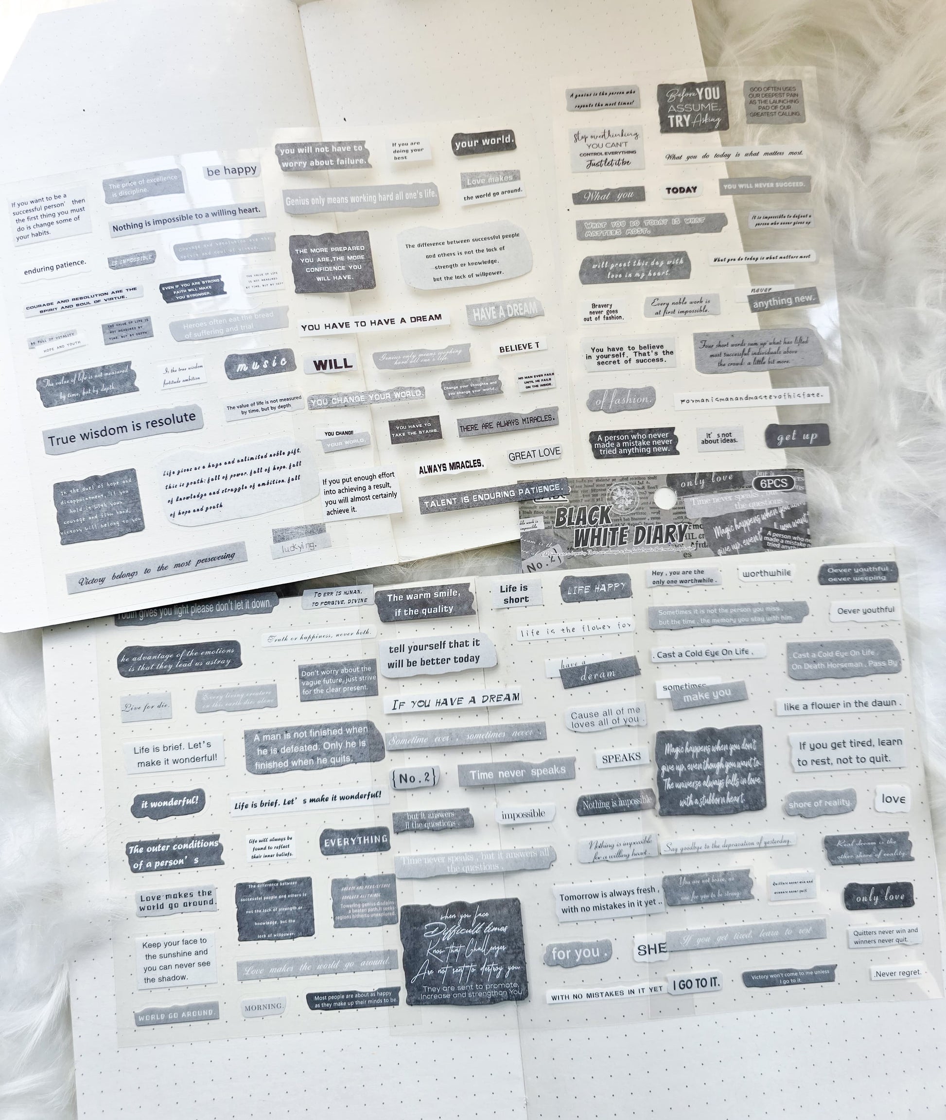 Fgjsg402|G10| Black White Diary Sentence Letters Quotes | 6 Sheets 150*100mm