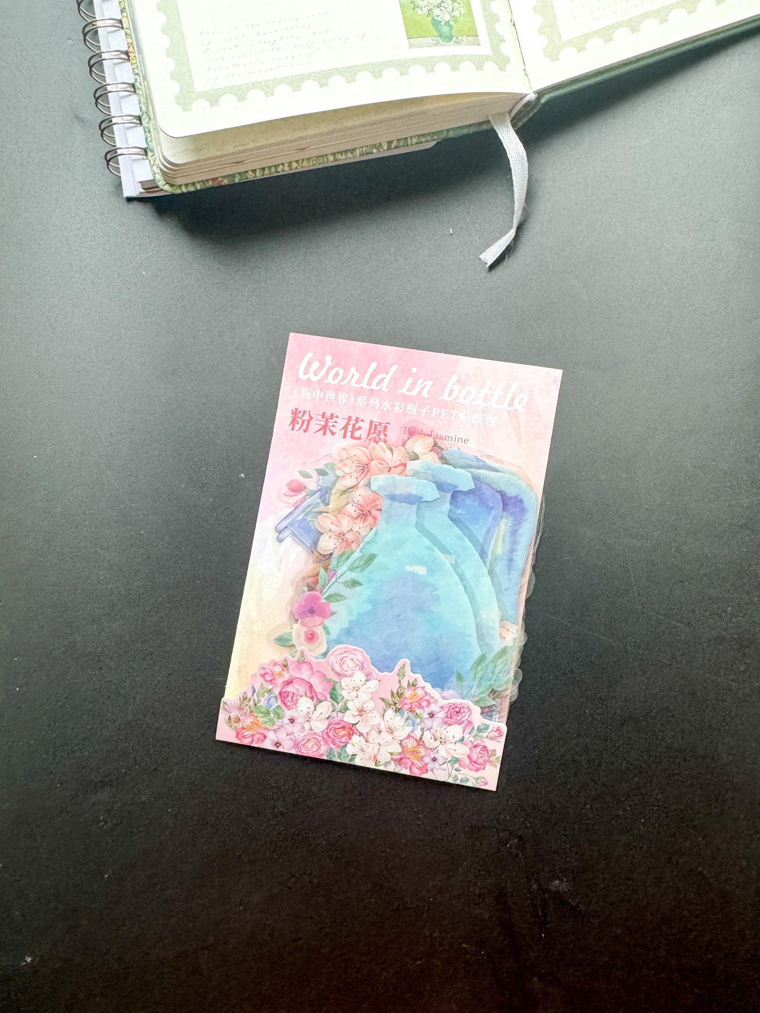 HGD-PZSJ001-Big Bottles with Foral Transparent PET Sticker | 10 Designs | 20 Stickers