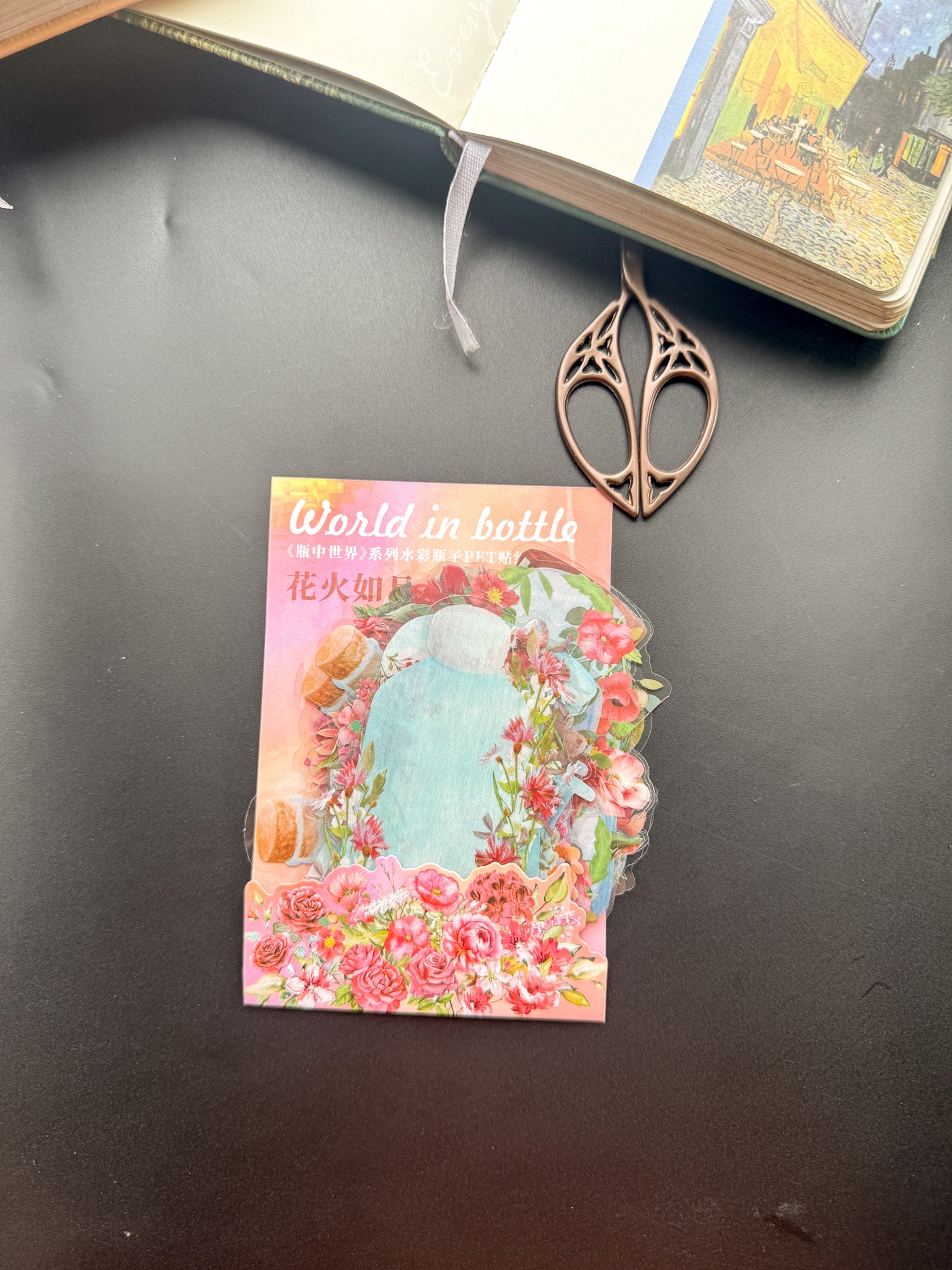 HGD-PZSJ004-Big Bottles with Foral Transparent PET Sticker | 10 Designs | 20 Stickers