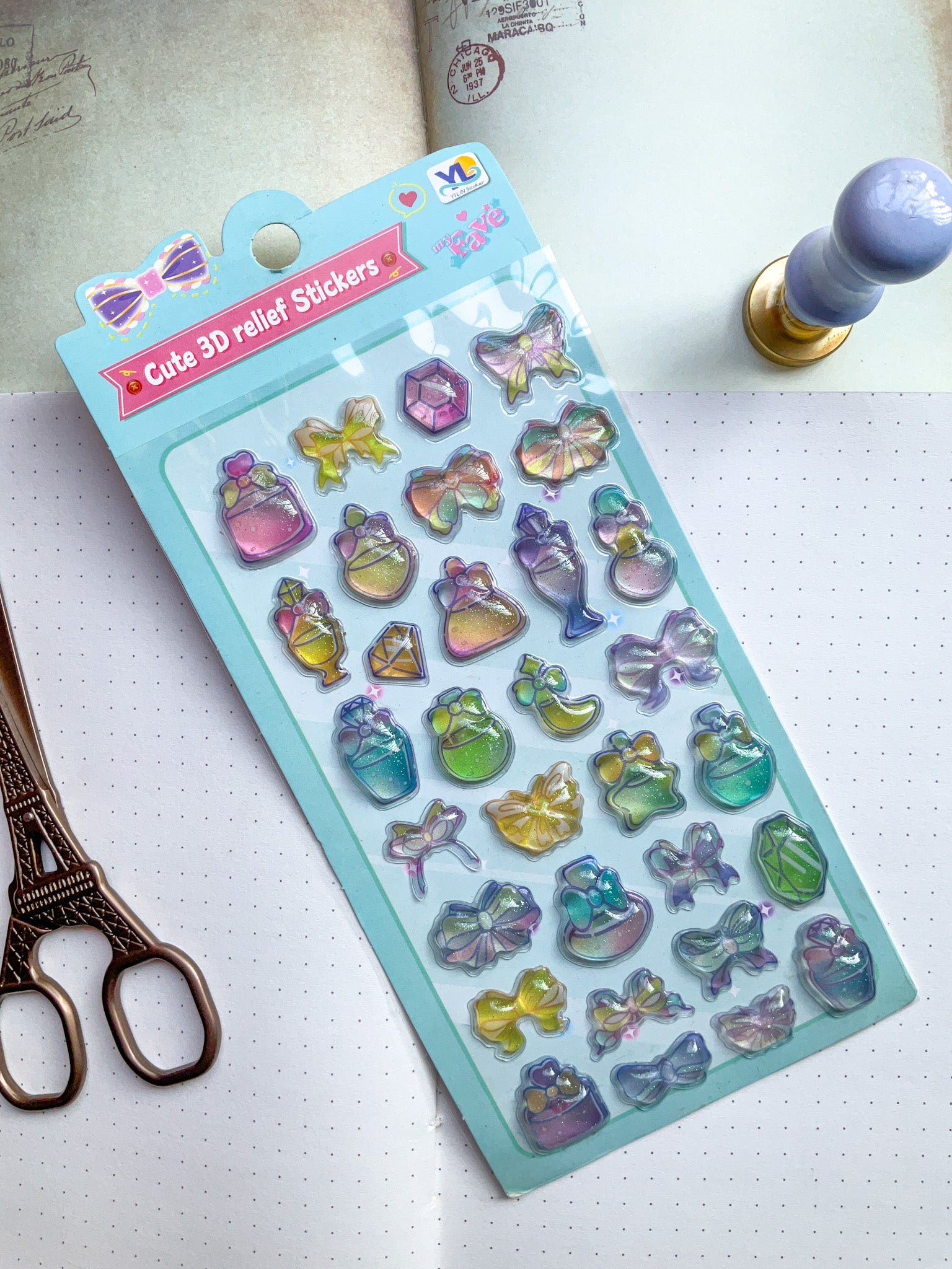 LDN #1-Cute 3D Embossed Kawaii Sticker Sheet| Puffy Sticker| Cute Relief Sticker