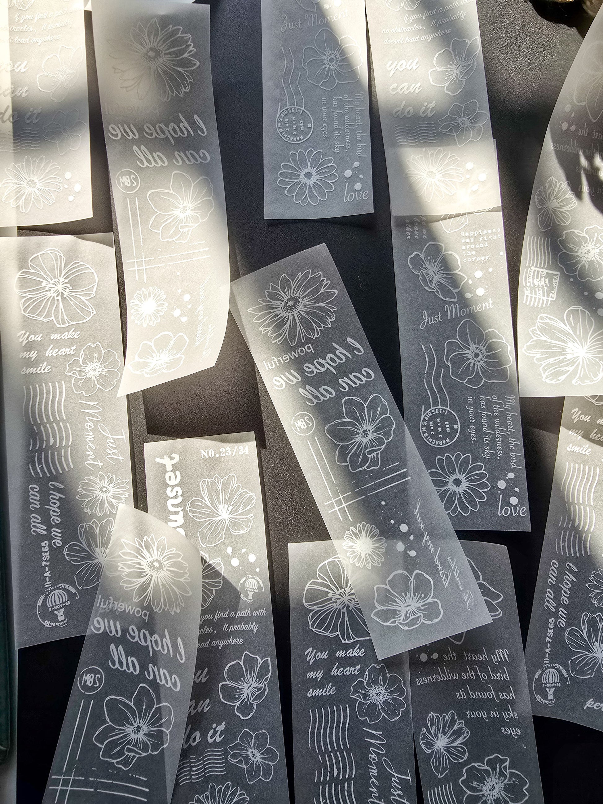NNHY801 - sticker this murmur flower series creative retro sulphuric acid paper white ink hand account material 30 sheets into