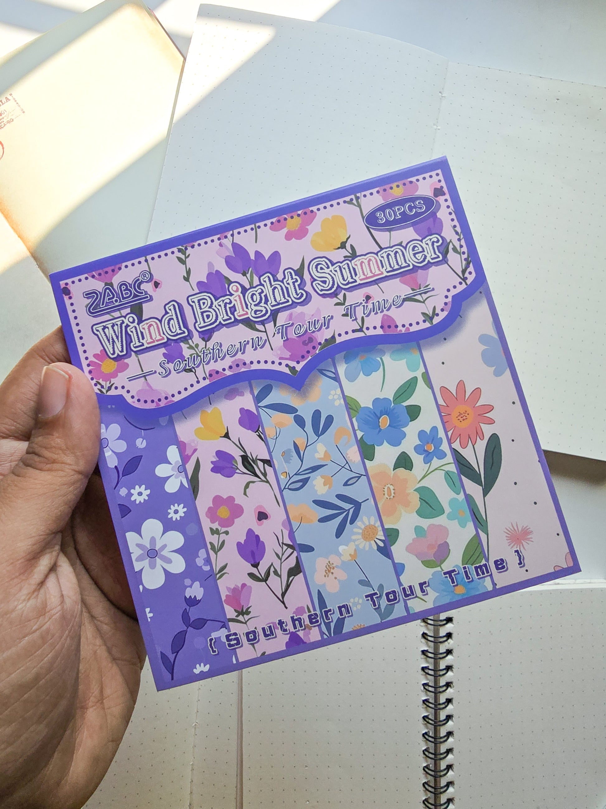 The NXSG-604 Wind Bright Summer journal paper set features 30 sheets of 120x120mm floral vintage paper in a graceful purple theme. Each piece exudes understated elegance, perfect for enhancing your journals, letters, or creative projects with a touch of refined charm. This collection beautifully marries classic floral motifs with a soothing summer palette, ideal for those seeking sophisticated stationery.