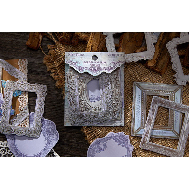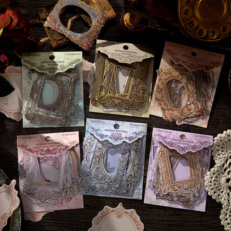 Sgtz13418 Retro Border Material Paper Sticker 25Pc
