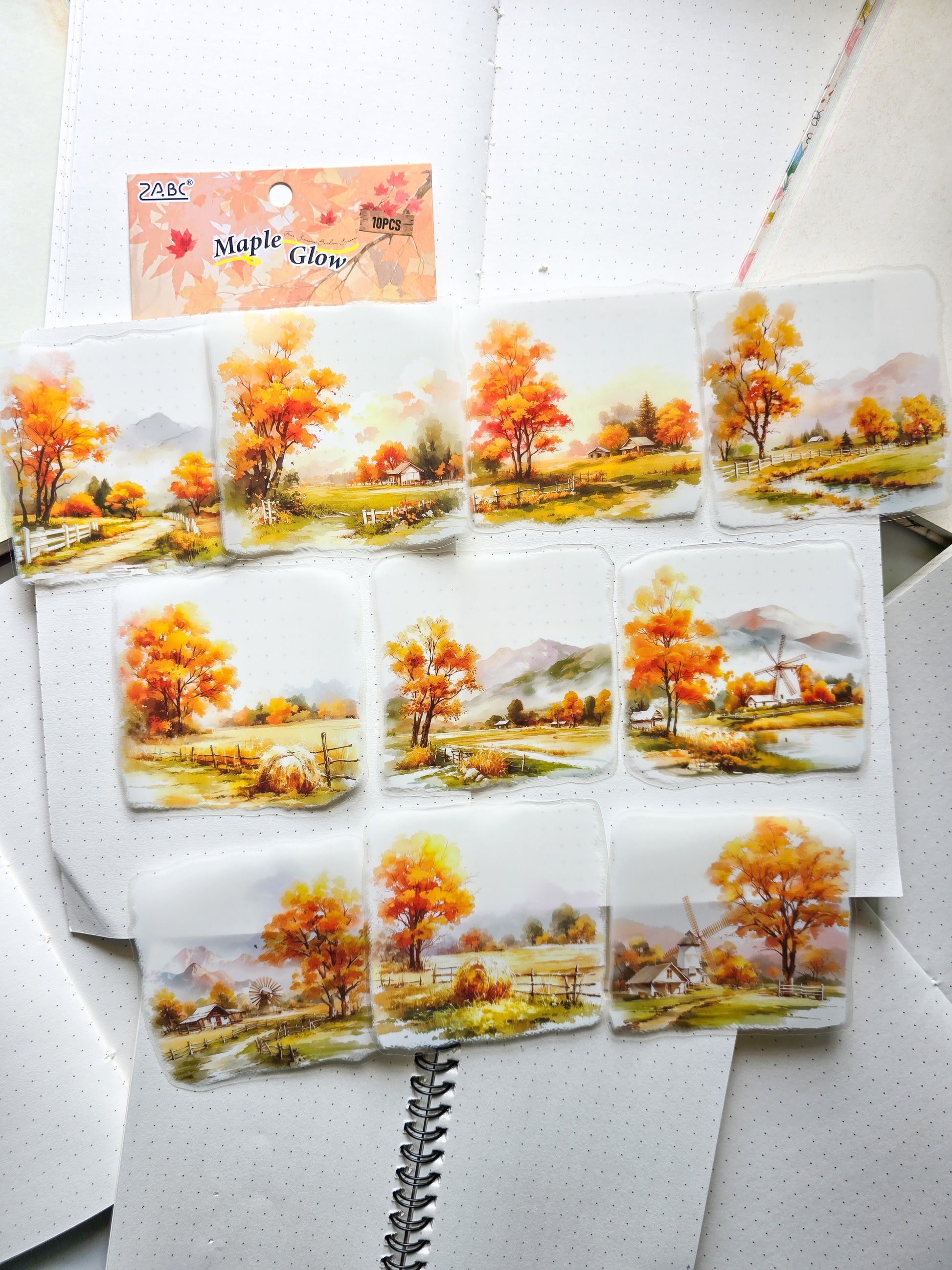 SJWY-403 Maple Glow| Transparent Pet Sticker| Scenery Theme|81-90mm 10Pcs|Yellow Theme