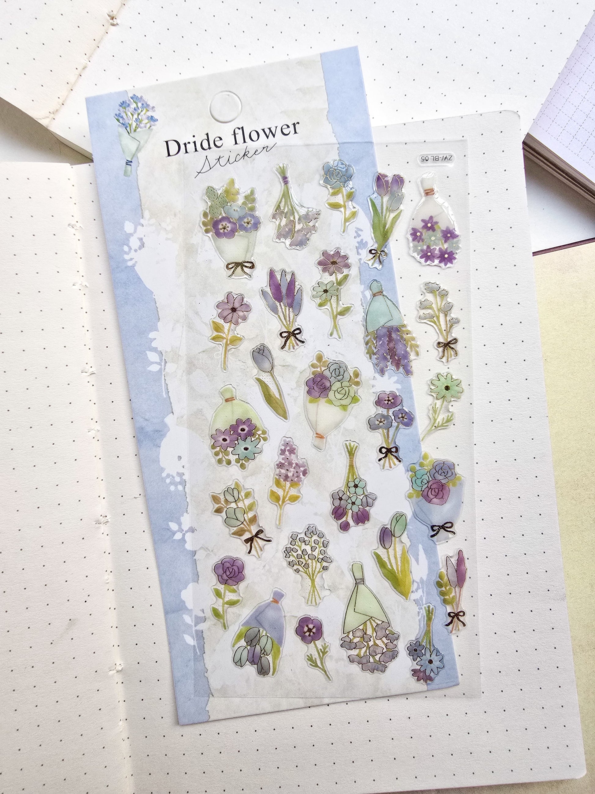 ZWBL-05 Dride Flower Sticker| Daiso Luxury Deco Sticker|3d Decorative Cute Floral Sticker|1 Sheet 9x20.5cm|Sky Blue Theme| Lunar