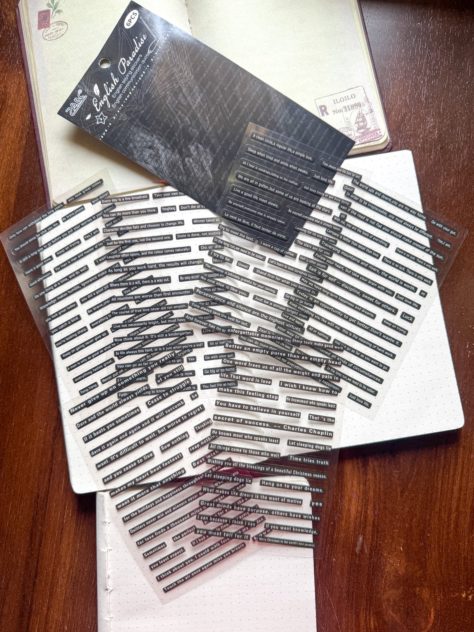 Transform your space with these inspiring English Paradise sticker sheets featuring motivational quotes and communication sayings. This comprehensive set includes 6 sheets of small letter stickers, each measuring 100x160mm, perfect for personalizing laptops, water bottles, journals, and more. The adhesive pet stickers showcase uplifting English phrases ideal for language learners, students, and quote enthusiasts. Easy to apply and remove without residue, these decorative stickers add character to any surface while serving as daily reminders of positivity and growth. Ideal for DIY projects, gift wrapping, and creative expression.